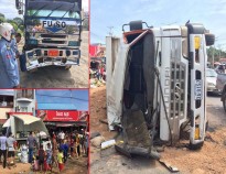 រថយន្តធន់ធំ ៣គ្រឿង បុកគ្នាក្រឡាប់ផ្ងាជើង នៅចំនុចកែងរ៉ា ក្រុង