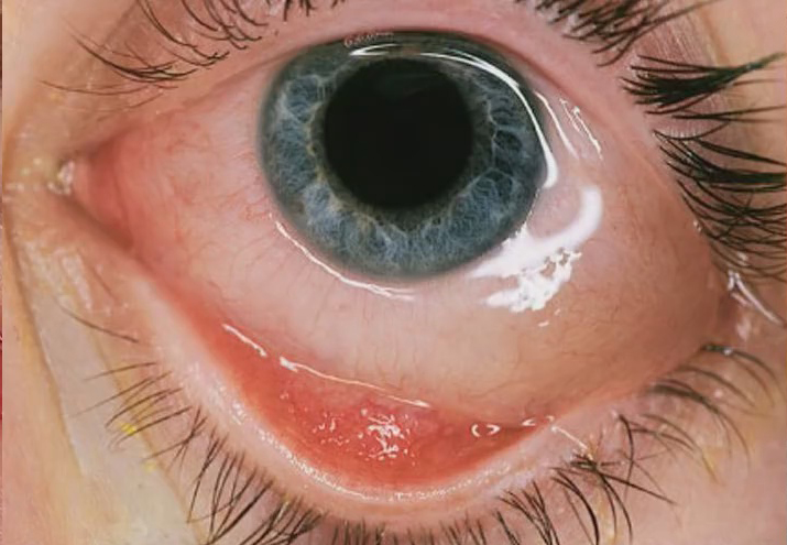 ជំងឺភ្នែកដុះកន្ទុយថ្លែនឡើងបាយ មីញ៉ូប ស្ងួត ក្រហម ហៀរទឹកភ្នែក ស្រវាំងភ្នែក ។